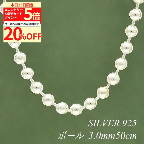【20%OFFクーポン+Wエントリー&楽天カードでP5倍23:59まで】シルバー ネックレス ボールチェーン 3.0mm 50cm チェーンのみ チェーンだけ シルバー 925 sv SILVER チェーン ネックレス メンズ レディース sv925 チェーン スターリングシルバー 銀 36,201 ~