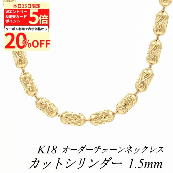 【20%OFFクーポン+Wエントリー&楽天カードでP5倍23:59まで】18金 ネックレス カットシリンダーチェーン 1.5mm ネックレス チェーン ピンクゴールド 長さ選べるオーダーチェーン 40cm〜120cm 45cm 50cm 55cm 60cm 18金 K18 18K 280,500 ~