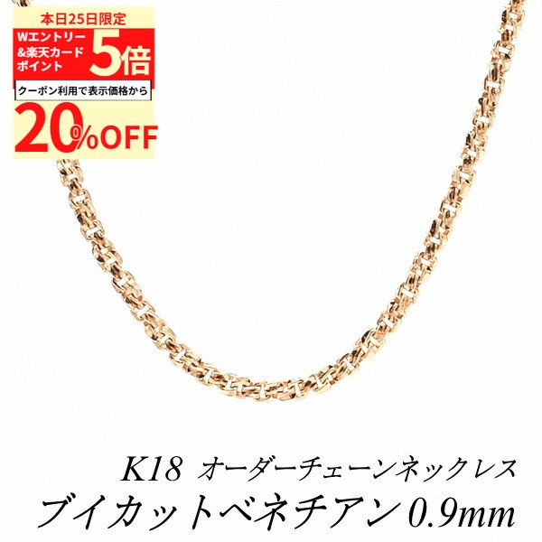 【20%OFFクーポン+Wエントリー&楽天カードでP5倍23:59まで】18金 ネックレス ブイカットベネチアンチェーン 0.9mm 長さ選べるオーダーチェーン 40cm〜120cm 45cm 50cm 55cm 60cm 18金 K18 18K ピンクゴールド 145,891 ~
