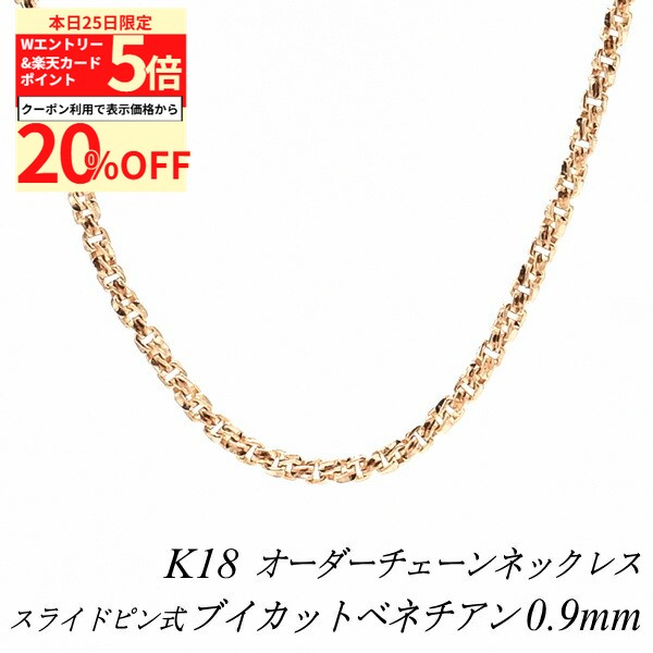 【20%OFFクーポン+Wエントリー&楽天カードでP5倍23:59まで】18金 ネックレス ブイカットベネチアンチェーン 0.8mm スライドピン式 長さ選べるオーダーチェーン 40cm〜120cm 45cm 50cm 55cm 60cm 18金 K18 18K ピンクゴールド 145,429 ~