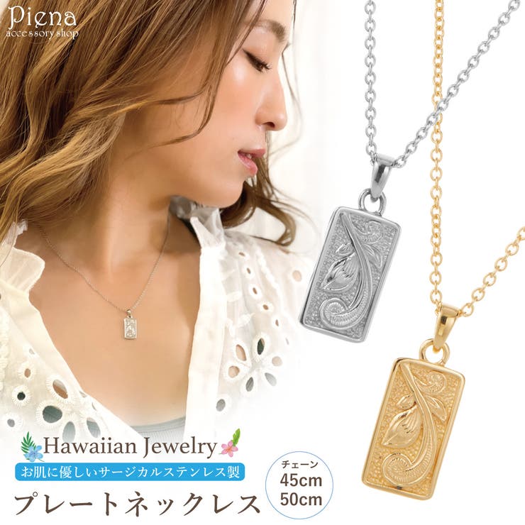 素材サージカルステンレス製サイズチェーン長さ:約45cm(40cmに調節可能)、約50cm(45cmに調節可能)チェーン太さ:約1.5mmトップ縦:約16.0mmトップ横:約9.0mmトップ厚み:約2.0mm 美しい彫柄を施したステンレス製のミニプレートネックレスです。 ハワイアンジュエリーの基本柄のスクロール柄を丁寧に彫り込んだシンプルでいて繊細な柄のチャーム。 小さなプレートはサイドを立たせて、側面にも彫模様を施した額縁のようなデザインです。 ハワイ語で波は、NALU(ナル)と言われています。 寄せては返す途切れることのない美しい波の様子から、「変わらぬ想い」や「つながり」を表現し、海を感じさせるデザインとして、長く親しまれてきました。 また、繰り返しチャレンジして乗り越えて、成功をつかむ成功のお守りとしても人気があります。 古代より受け継がれてきた伝統あるハワイアンジュエリーは、一つひとつのモチーフに物語や想いが込められ、長い歴史の中で人々に愛されてきました。 日常に自然となじむデザインで、普段使いはもちろん、大切な方への贈り物にもぴったりです。 記念日、自分へのご褒美、プレゼント、クリスマス、誕生日など、様々なイベントの贈り物にぴったりの洗練されたアクセサリーです。 素材は医療用工具のメスやハサミにも使用されているサージカルステンレスを使用していますので、金属アレルギーの方でも比較的安心してご使用頂けます。 (全ての方に金属アレルギーが出ない事を保障する物ではございません)返品・交換について購入後の交換は受け付けておりません。 予めご了承ください。 返品を希望される場合は購入履歴一覧の「ショップへの問い合わせ」よりお問い合わせください。 =========================複数配送先指定について1件の注文に対して、異なる住所への配送は対応出来かねます。 恐れ入りますが、異なる住所へ配送をご希望の場合、配送先毎に分けて注文いただきますようお願い申し上げます。 【アクセサリーWOMEN】シルバー ゴールド 45cm 50cm 【10%OFFクーポン!2/10(火)1:59まで】アクセサリーショップPIENA ネックレス レディース メンズ サージカルステンレス製 ハワイアンジュエリー ハワジュ ミニ プレート リーフ 葉っぱ スクロール お肌に優しい 金属アレルギー対応 上品 9,742 ~