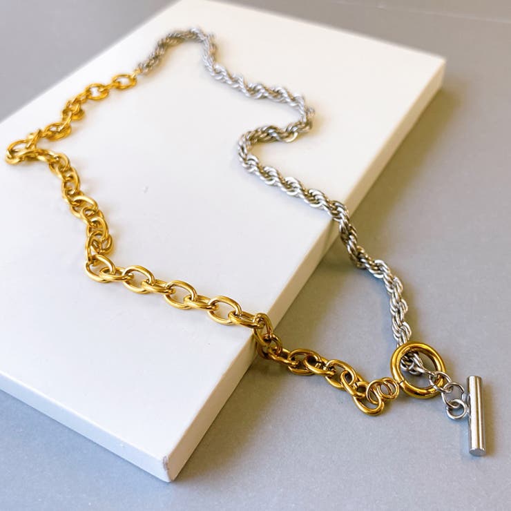 シルバーとゴールドのメタル基調としたバイカラーチェーンネックレス。 シンプルでスタイリッシュな2種類のデザインチェーンなので、シーズン問わず活躍が期待できます。 マンテル留め具を使用しているので、ストレスフリーで着脱できるのも嬉しいポイントです。 ※変色やサビに強く、お肌に優しいステンレス素材です。 ■素材ステンレス(SUS304) ■サイズチェーン長さ:38cmアズキチェーン太さ:5.0mmロープチェーン太さ:3.5mm返品・交換について購入後の交換は受け付けておりません。 予めご了承ください。 返品を希望される場合は購入履歴一覧の「ショップへの問い合わせ」よりお問い合わせください。 =========================複数配送先指定について1件の注文に対して、異なる住所への配送は対応出来かねます。 恐れ入りますが、異なる住所へ配送をご希望の場合、配送先毎に分けて注文いただきますようお願い申し上げます。 【アクセサリーWOMEN】 【10%OFFクーポン!2/10(火)1:59まで】FACION バイカラーマンテルステンレスネックレス コンビカラー アレルギー対応 金属アレルギー つけっぱなし サージカルステンレス アクセサリー 2,145 ~
