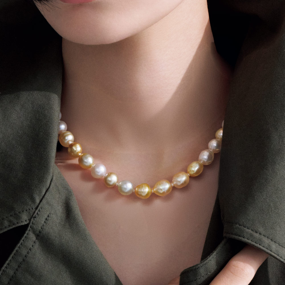 月の満ち欠けを映したようなまろやかな色とグラマラスな存在感で、羨望を集める白蝶真珠。 高品質なものは、ますます入手困難となっています。 今回は普段使いがしやすい、約8〜9mmの白蝶バロックパールをネックレスに。 肌映えも美しいゴールドからホワイト系までの多彩なカラーを、あえてランダムに組みました。 ゴールドジュエリーとのレイヤードも、ひときわ艶やか。 大人ならではの高い美意識、圧倒的なリュクス感を、これ一本で叶えます。 ページ下部に画像の説明がございます。 一部別売りの商品もございますので、説明文ご確認のうえご注文ください。 >画像の説明はこちら<仕様・サイズ■今回準備数:20■商品寸法:約42cm■素材:白蝶真珠(約8〜9mm・ホワイト系・ゴールド系・バロック)・SV925(ロジウム仕上げ)■差込式■原産国:日本製【送料マーク:A】 この商品の販売価格には配送料880円(税込)が含まれています。 画像の説明コーディネート例 /バロックパールとゴールド。 海と大地の光彩を重ね私だけの物語を奏でる 8-9mm白蝶バロックパール マルチネックレス 真珠 パール ジュエリー アクセサリー J00201 \LINE友だち登録でクーポン/ 178,880 ~