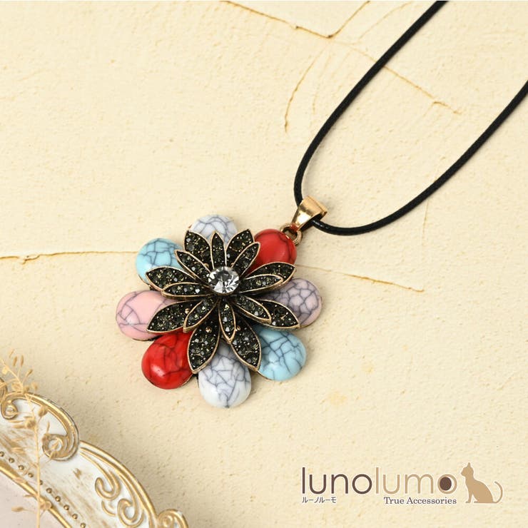 【10%OFFクーポン!2/10(火)1:59まで】lunolumo 日本製 ネックレス ペンダント レディース 花 フラワー キラキラ マルチカラー 可愛い N アクセサリー 2,080 ~