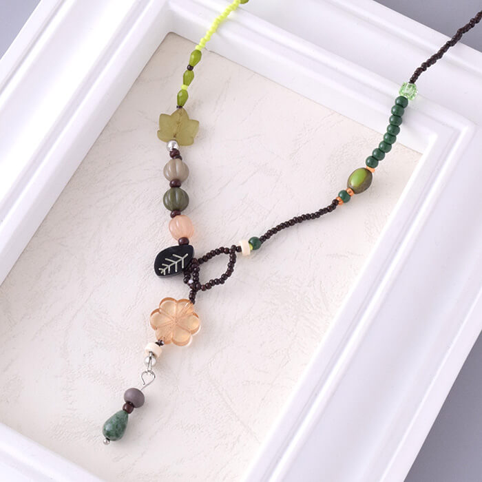商品詳細材質合金、ガラスサイズ長さ約40cm重さ約7.3gご注意ご視聴のモニターにより、実際の色と異なって見える場合がございます。 また写真は原寸大ではございません。 細部パーツの仕様は予告なく変更となる場合がございます。 多少画像との違いがある場合がございますのでご了承ください。 優しいグリーン系のビーズとリーフモチーフが組み合わさった、ナチュラルテイストのネックレス。 植物や自然を感じさせるデザインで、カジュアルスタイルにもぴったりです。 異素材ビーズをミックスした個性的なデザインは、シンプルな服装にアクセントを加え、コーディネートを一気におしゃれに仕上げます。 軽やかな着け心地で季節を問わず活躍し、エスニックやボヘミアン、ナチュラルファッションとも好相性。 リラックス感のあるデザインで、普段使いはもちろん、プレゼントにもおすすめです。 キーワード:ネックレス レディース ビーズ グリーン リーフ ボヘミアン ナチュラル 通販 プレゼント おしゃれ 【P10倍クーポン】ネックレス ビーズ リーフモチーフ グリーン ナチュラル ボヘミアン レディース アクセサリー 通販 2,200 ~