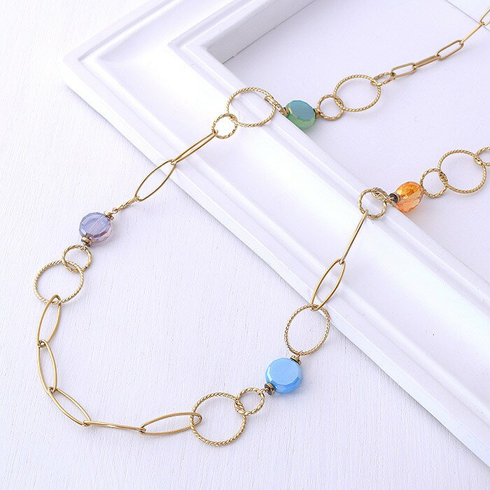 【P10倍クーポン】マルチカラー ゴールドチェーンネックレス ガラスビーズ メタルチェーン 3,080 ~