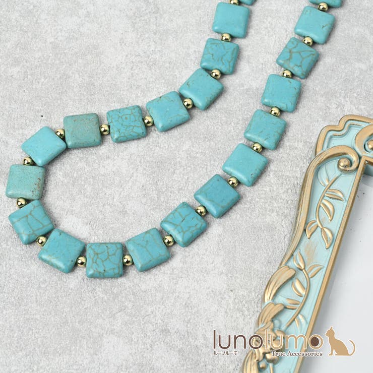 【10%OFFクーポン!2/10(火)1:59まで】lunolumo ネックレス レディース マグネサイトターコイズ 天然石 スクエア メタル ゴールド 夏 N アクセサリー 2,080 ~