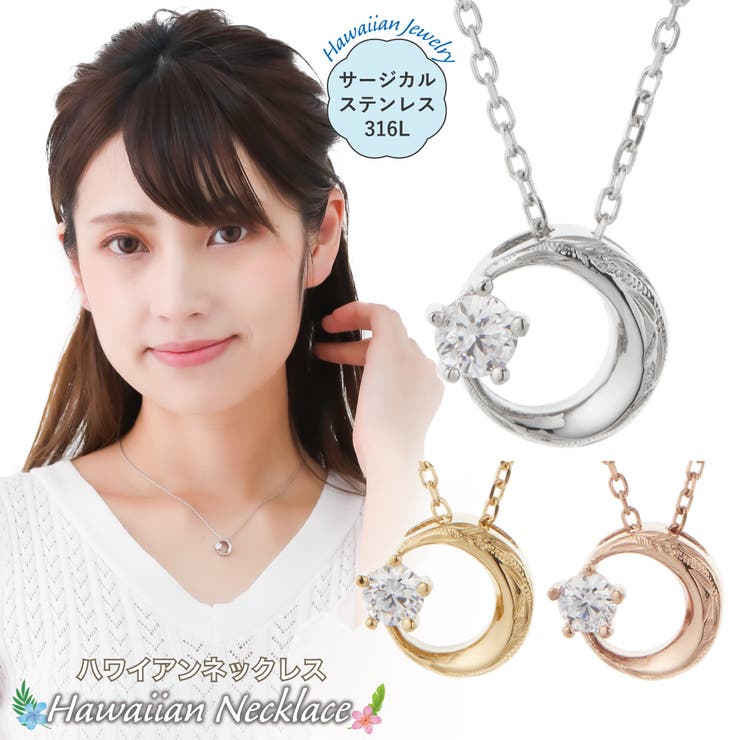 【10%OFFクーポン!2/10(火)1:59まで】アクセサリーショップPIENA ペンダント ネックレス レディース サージカルステンレス316L キュービックジルコニア 月と星 三日月 ハワイアンジュエリー ハワジュ 彫り 模様 お肌に優しい 金属ア 8,390 ~