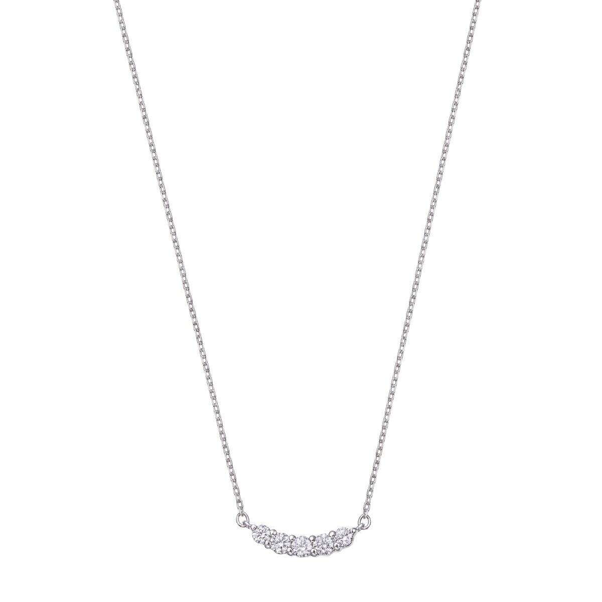 デコルテを華やかに魅せてくれるバータイプのネックレス。 5石のダイヤモンドがきらめいて、どんなスタイルもさりげなくお洒落にしてくれます。 シンプルなデザインのネックレスはオフィスでも着けやすいアイテムです。 ハート&キューピッド(H&C)のダイヤモンドは、カットのプロポーションとシンメトリーが優れていて強い輝きを放ちます。 地金素材:Pt900/Pt850使用宝石:ダイヤモンド(合計0.12カラット前後)長さ:約40cm(アジャスターカン付)トップの大きさ(縦×横):約3×11mm※サイズガイドはこちら※有料ケースはこちら プラチナダイヤモンドネックレス 52,000 ~