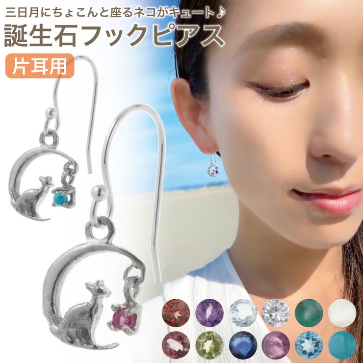 素材シルバー925製アクアマリン、アメジスト、エメラルドガーネット、サファイア、ダイヤモンドタンザナイト、ピンクトルマリン、ブルートパーズペリドット、ムーンストーン、ルビーサイズ全長:約20.0mmモチーフ縦:約9.5mmモチーフ横:約8.5mmモチーフ厚み:約1.5mmポスト太さ:約0.5mm※こちらの商品は片耳用となります。 両耳にお付け頂きたい場合は2つお買い求め下さい。 12誕生石が上品に煌めくシルバー925製のフックピアスです。 三日月にちょこんとお座りしているネコがとってもキュートなデザインです♪幼く思われがちなアニマルモチーフも可愛らしさのある上品な大人の雰囲気に。 ご自分の誕生石や想い人の誕生石をお守り代わりに身につけたり、お友達へのプレゼントとしても喜ばれるアイテムです。 動くたびにキラリと煌めく12種類の天然石が可憐な女性らしさを演出してくれますよ♪ キュービックジルコニアはダイヤの代用品として愛顧者の多い人工石です。 普段使いやトラベルジュエリーとして海外セレブにも愛用されています。 ガラス等のイミテーションより高い光の屈折率を誇りますので、光の揺れに合わせてキラキラとリッチな輝きを生み出してくれます。 シルバー925とは、92.5%の銀を使用した高品質な銀製品であることを表しています。 残りの7.5%は製品として加工しやすいように銅などの他の金属を混ぜて硬度を上げています。 銀製品では高品質の物としてシルバー925が存在しています。 返品・交換について購入後の交換は受け付けておりません。 予めご了承ください。 返品を希望される場合は購入履歴一覧の「ショップへの問い合わせ」よりお問い合わせください。 =========================複数配送先指定について1件の注文に対して、異なる住所への配送は対応出来かねます。 恐れ入りますが、異なる住所へ配送をご希望の場合、配送先毎に分けて注文いただきますようお願い申し上げます。 【アクセサリーWOMEN】1月ガーネット 2月アメジスト 3月アクアマリン 4月キュービックジルコニア 5月エメラルド 6月ムーンストーン 7月ルビー 8月ペリドット 9月サファイア 10月トルマリン 11月ブルートパーズ 12月ターコイズ 【10%OFFクーポン!2/10(火)1:59まで】アクセサリーショップPIENA ピアス レディース シルバー925 片耳用 1個売り 誕生石 バースデーストーン 天然石 猫 ネコ 三日月 ムーン 揺れる 1粒 1石 ワンストーン かわいい 大人可愛い 2,981 ~
