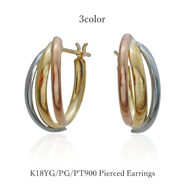18金 ピアス トリニティ フープピアス 3カラー スリーカラー K18 プラチナ pt900 18k 地金 コンビ カラー トリコロールカラー おしゃれ 品質保証書 女性 レディース ジュエリー アクセサリー プレゼント ギフト 送料無料 SSS 39,600 ~