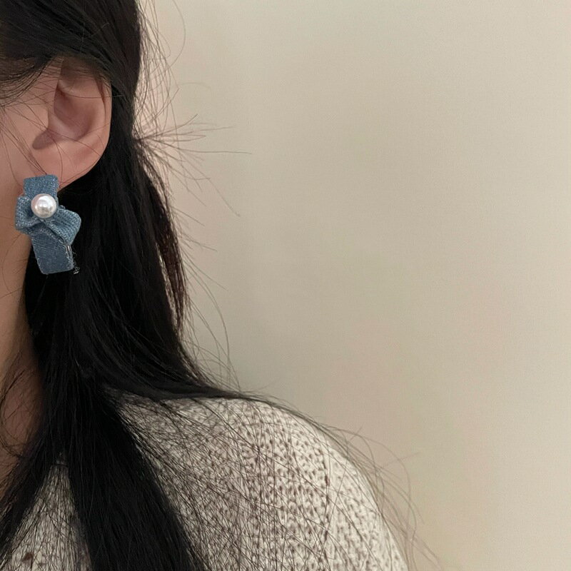 デニム素材の蝶結びデザインが特徴の可愛いピアスです。 S925ポストを使用しており、安心してお使いいただけます。 韓国ファッションにぴったりのアイテムで、カジュアルなコーディネートに華やかさをプラスします。
