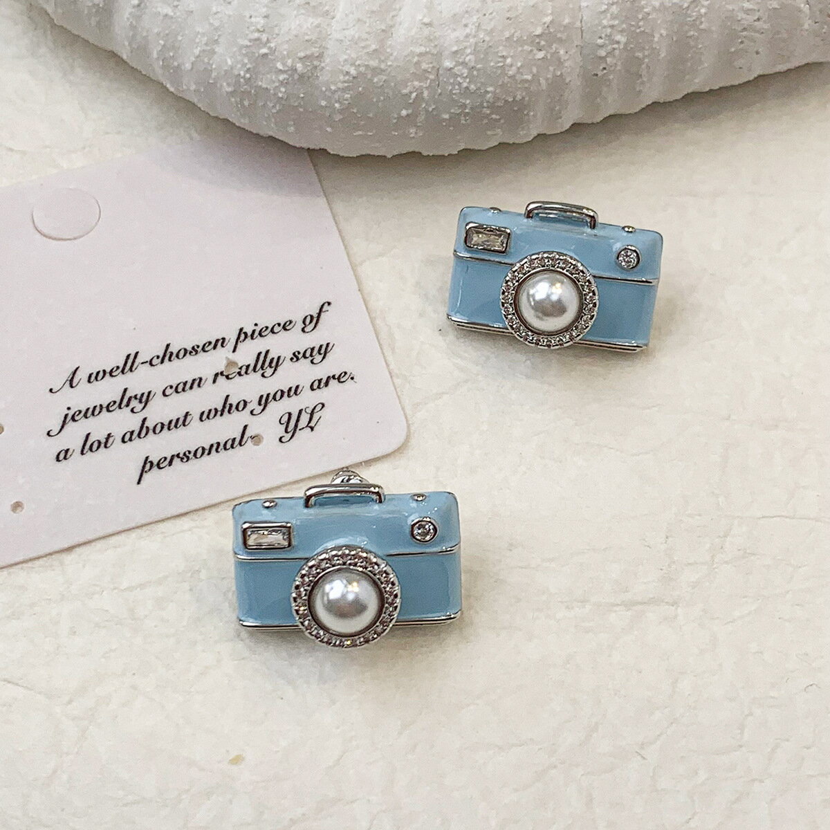 このカメラデザインのピアスは、韓国ファッションのトレンドを取り入れたおしゃれなアイテムです。 可愛らしいカメラの形とパールのアクセントが特徴で、どんなコーディネートにもぴったり。 特別な日や普段使いに最適なアクセサリーです。