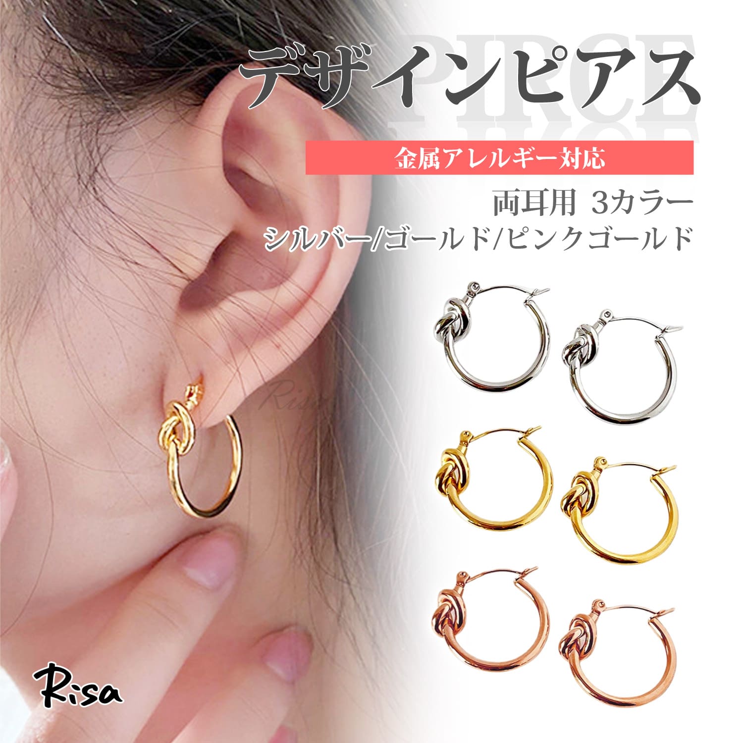 デザインピアス ピアス 両耳 金属アレルギー対応 サージカルステンレス ひねり リング フープ シルバー ゴールド ピンクゴールド 1,680 ~