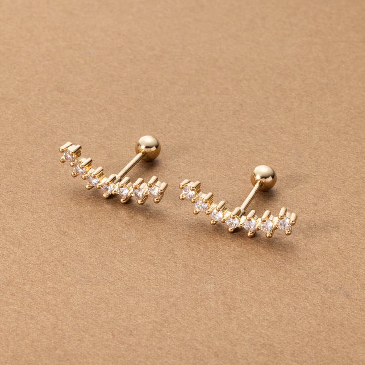耳たぶに沿うように緩やかにカーブを描いたビジューが煌めくネジロック式ピアス。 華やかな輝きで顔周りにアクセントを添えてくれます。 ネジのようにくるくると回して留める、外れにくいネジロック式キャッチで後ろ姿も◎■サイズ縦×横×厚みフロントモチーフ:1.8cm×0.6cm×0.22cmキャッチ:直径0.3cmシャフトの長さ:0.8cmシャフトの太さ:0.8mm(20ゲージ)■重さ片方 0.9g■素材フロントモチーフ:合金 キュービックジルコニア(人工石)シャフト/キャッチ:サージカルステンレス※アレルギー反応に関しましては個人差がございますので、全ての方にアレルギー反応が起きないことを保証するものではございません。 [関連ワード] 目立ちにくい キャッチ キュービックジルコニア ラインストーン ステンレスポスト ファッション おすすめ かわいい 大人 レディース 定番 上品 カジュアル きれいめ シンプル 贈り物 自分へのご褒美 SNS 普段使い 妻 夫 彼女 彼氏 友達 20代 30代 40代 50代 春 夏 秋 冬返品・交換について購入後の交換は受け付けておりません。 予めご了承ください。 返品を希望される場合は購入履歴一覧の「ショップへの問い合わせ」よりお問い合わせください。 =========================複数配送先指定について1件の注文に対して、異なる住所への配送は対応出来かねます。 恐れ入りますが、異なる住所へ配送をご希望の場合、配送先毎に分けて注文いただきますようお願い申し上げます。 【アクセサリーWOMEN】ゴールド シルバー ピンクゴールド ピアスゴールド シルバー ピンクゴールド