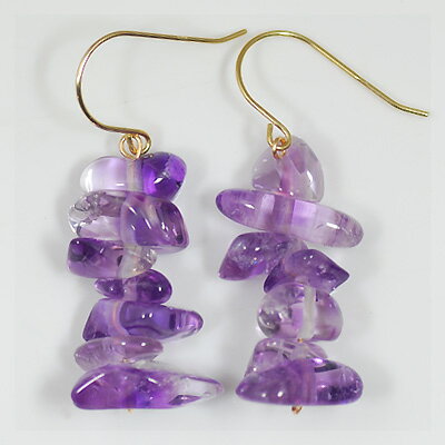 天然石には、ひとつひとつ色の違いや内包物がある為色味などが若干異なる場合もございます。 大自然から採れた天然の物でそので、ご理解頂けますようお願い致します。 ITEM INFORMATION 素材 10金イエローゴールド 石 アメジスト(さざれ石) 本体サイズ ◆ピアス形状:フックタイプ 縦25mm横7mm ■サイズには多少の誤差がございます。 また、お使いのモニターにより若干色の誤差が生じる場合がございます。 予めご了承くださいませ。 ■当店では少しでもお客様にお安く提供出来るようコストダウンに努めております為、簡易包装での発送になりますことを何卒ご理解くださいますようお願い致します。 アメジスト ひと粒ひと粒表情が違うさざれ石を並べた、 表情豊かな天然石ピアスのご紹介です。 それぞれ違う色・大きさのさざれ石を 並べることによって、個性的であり魅惑的に 横顔を彩ってくれます。 2月の誕生石アメジストは、 誠実・平和の象徴とされており、異性を引き寄せる パワーを与え、隠れた魅力を引き出してくれると 言われているので、女子力アップのお守りに いかがですか? 取り外しが簡単なフックタイプなので、 気軽に装着できます。 また、フックタイプのピアスはキャッチをなくす 心配がないところが嬉しいですね。 写真1 アメジストを10金線に通した シンプルなピアスです。 耳に引っかけるだけの 、着けやすいフックタイプです。 ピアス金具とアメジストを通した金線の繋ぎ目です。 石が外れないように、線をクルッとまいております。 ↑各画像をクリックすると拡大してご覧いただけます 2月の誕生石 誠実・平和の象徴とされており、異性を引き寄せるパワーを与え、 隠れた魅力を引き出してくれると言われているパワーストーンです。 また、暴飲暴食・悪酔い予防から解毒、知性を磨き不眠症を治療する 護身符ともされています。
