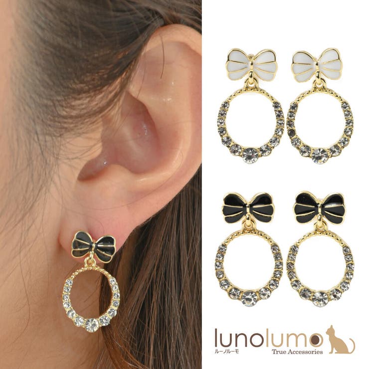 【サイズ・容量】モチーフの大きさ:2.5×1.5×0.2【素材・成分】ラインストーン、樹脂、合金(brass)ポスト:シルバー925【金属アレルギーについて】コーティング(メッキ)部分などの金属部分は、体質や健康状態によって、アレルギーが起きる場合がございます。 アレルギーが起きた場合には、ただちにご使用をお止めていただくようお願い致します。 【コーティング(メッキ)について】汗や水によって濡れたり、湿気などによってコーティング(メッキ)が剥がれる場合がございます。 ご使用後は乾いた柔らかい布で軽く拭き、なるべく空気に触れないようにビニールの袋に入れて保存していただくことをおすすめします。 返品・交換について購入後の交換は受け付けておりません。 予めご了承ください。 返品を希望される場合は購入履歴一覧の「ショップへの問い合わせ」よりお問い合わせください。 =========================複数配送先指定について1件の注文に対して、異なる住所への配送は対応出来かねます。 恐れ入りますが、異なる住所へ配送をご希望の場合、配送先毎に分けて注文いただきますようお願い申し上げます。 【アクセサリーWOMEN】白(241973 黒(241974 【10%OFFクーポン!2/10(火)1:59まで】lunolumo ピアス レディース リボン りぼん キラキラ ラインストーン 白 黒 可愛い 揺れる シルバー925 PI アクセサリー 1,180 ~