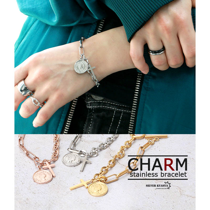 詳細 商品概要 チャームが揺れる、2種類のチェーンを使用したブレスレット。 コインとクロスがアクセントになった華やかなアイテムです。 一点投入するだけで、目を引くアクセントになり洗練された雰囲気に。 素材には、ステンレスを使用。 金属アレルギーも出にくいと言われるアクセサリーに最適の素材です。 18K金メッキが施されているため、腐食に強くて普段使いにぴったりです。 素材 ステンレス素材 18Kコーティング スペック ■チェーン 全長:約18.5cm チェーン幅:約6mm チェーン厚み:約1〜2mm ■マンテル(留め具) 輪:直径約15mm トグル:約21mm ■チャーム コイン:直径約18mm クロス:約20*12mm その他 ・SILVER KYASYA[シルバーキャシャ]オリジナルポーチ付属 ・関連アイテム 【キーワード】 アクセサリー ジュエリー stainless ステンレスアクセサリー お洒落 定番 人気 トレンド おすすめ プレーン シンプル ベーシック カジュアル フェミニン 可愛い 大人 シンプル バレンタイン クリスマス 友人 恋人 彼氏 友達 同級生 日常使い 普段使い つけっぱなし プチプラ レディースブレスレット 小豆チェーン ステンレス マンテル 18kgp 金メッキ クロス コイン ゴールド シルバー gold silver あずき 十字架 エリザベス女王 金属アレルギー対応 2,750 ~
