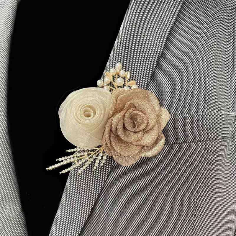 ・素材: 造花(フラワー)・製法: ハンドメイド・用途: ウェディング・カラー展開: シャンパン(パール付きリストブーケ)、シャンパン(パール付きコサージュ)・スタイル: 韓国