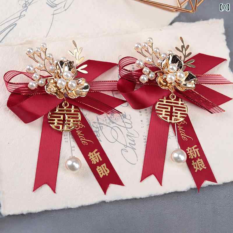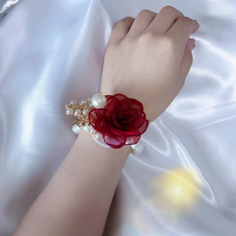 ・カテゴリ: 胸花、リストブーケ・スタイル: 韓国・カラー展開: レッド、シャンパン・セット内容: 新郎新婦、付添人、友人、両親、手首用(パールチェーン)、手首用(リボン)