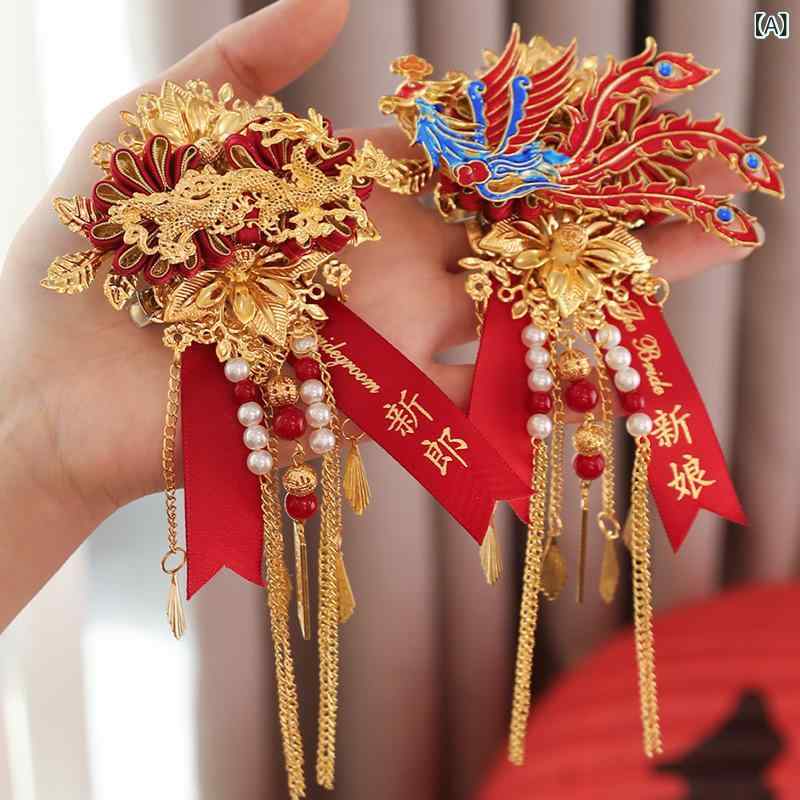 ・素材: フラワー・加工: 民間工芸・利用シーン: 結婚式・カラー: ワインレッド、シャンパンゴールド・スタイル: 中華風