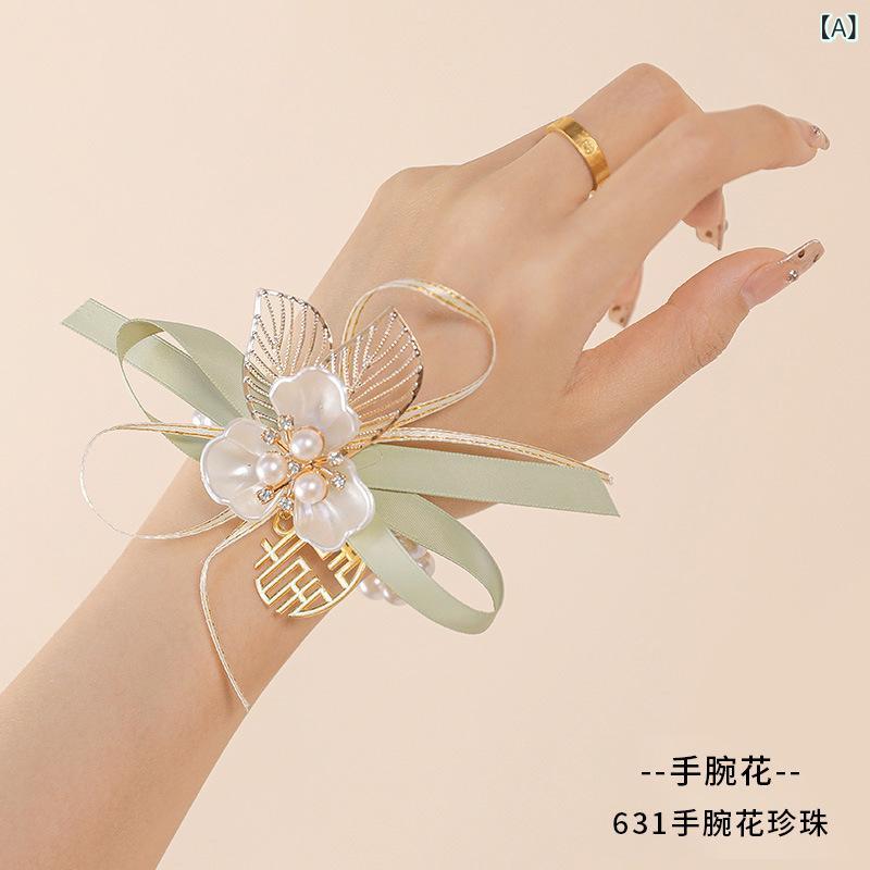 ・素材: プラスチック・製法: ハンドメイド・用途: ウェディング・カラー展開: 森系水晶花(ブレスレット)、森系水晶花(リボン)、森系水晶花(コサージュ)、シンプルシャンパンローズコサージュ・スタイル: 韓国