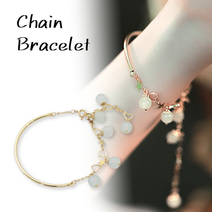 【P10倍クーポン】ライトブルー&ゴールド チャームブレスレット ライトグリーン 星 ハート モチーフ 1,320 ~