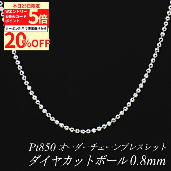 【20%OFFクーポン+Wエントリー&楽天カードでP5倍23:59まで】プラチナ ブレスレット ダイヤカットボールチェーン 0.8mm 長さ選べるオーダーチェーン 15cm〜20cm 16cm 17cm 18cm 19cm Pt850 pt850 プラチナ850 180日間お修理保証 51,766 ~
