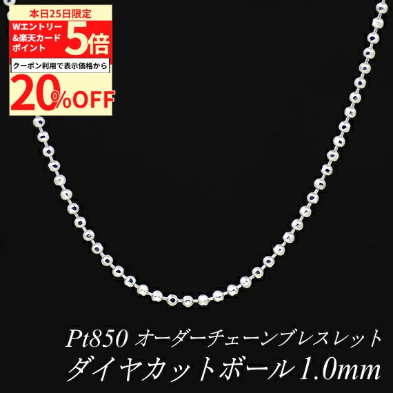 【20%OFFクーポン+Wエントリー&楽天カードでP5倍23:59まで】プラチナ ブレスレット ダイヤカットボールチェーン 1.0mm 長さ選べるオーダーチェーン 15cm〜20cm 16cm 17cm 18cm 19cm Pt850 pt850 プラチナ850 180日間お修理保証 57,835 ~
