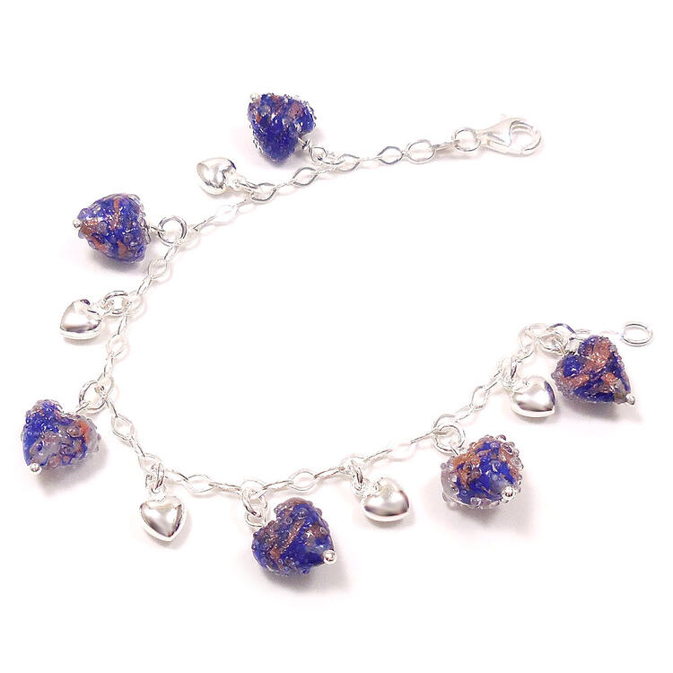 ブレスレット シルバー925 レディース ベネチアンガラス・ハートチャーム ネイビー イタリア製 8,580 ~