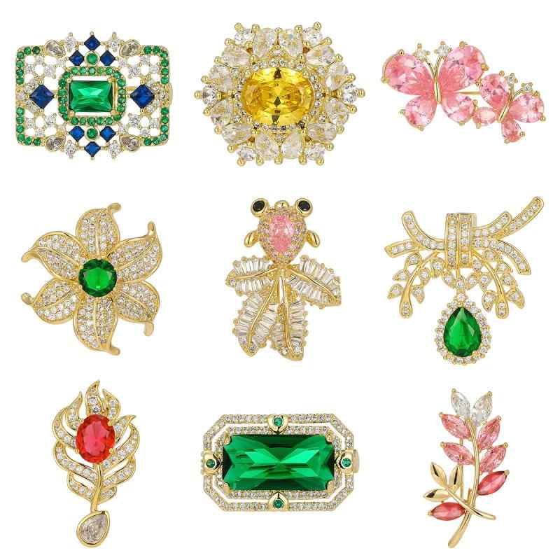 ・カテゴリ: ブローチ・素材: 銅・: 花、葉・装飾素材: ジルコン・加工: 象嵌・スタイル: ラグジュアリー、通勤・対象: ユニセックス・要素: 如意