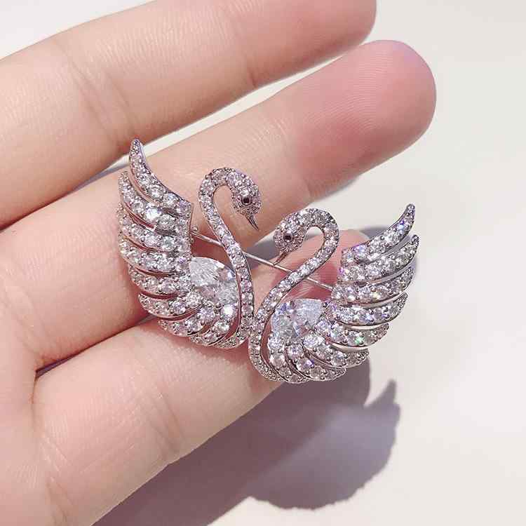 ・カテゴリ: ブローチ・スタイル: 韓国・対象: 男女兼用・モチーフ: スワン・素材: 銅・装飾素材: 金メッキ、人工宝石、半貴石・カラー: ホワイト