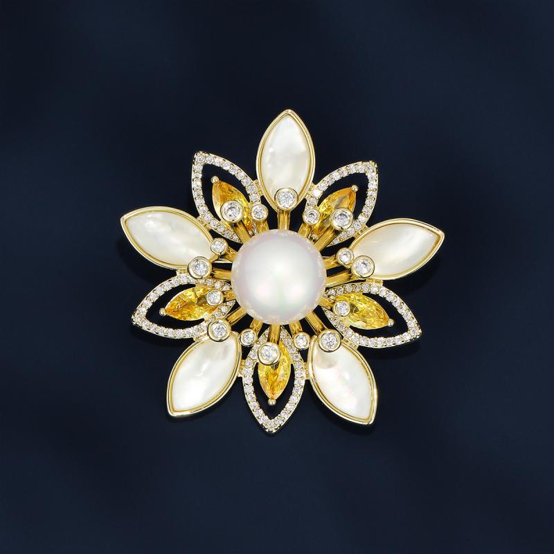 ・カテゴリ: ブローチ・素材: 銅・装飾素材: ジルコニア・加工: 象嵌・: フラワー・スタイル: ラグジュアリー、ファッション、通勤・対象: 男女兼用