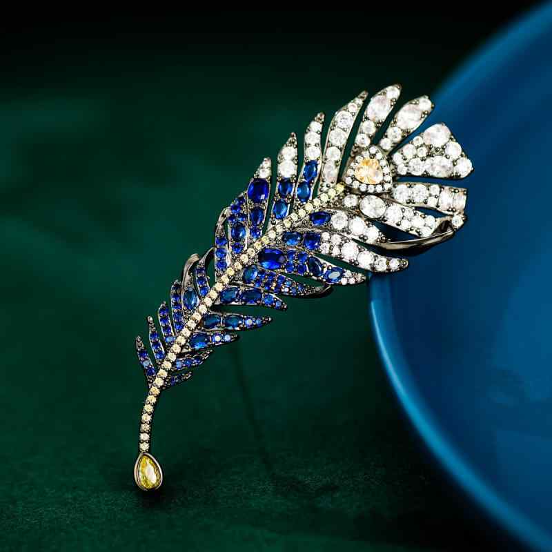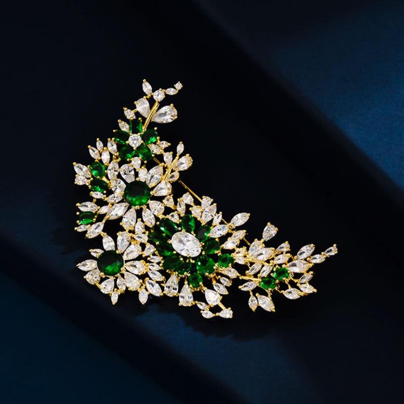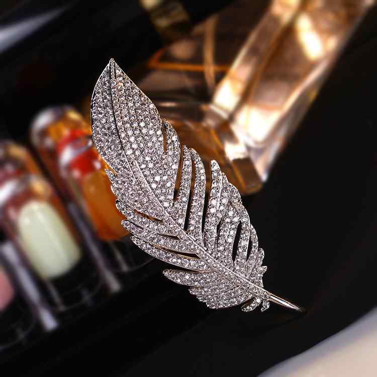 ・カテゴリ: ブローチ・素材: 銅・装飾素材: ジルコニア・モチーフ: 羽、葉、木、植物、花・加工: 象嵌・スタイル: ラグジュアリー、ファッション、通勤・対象: 男女兼用