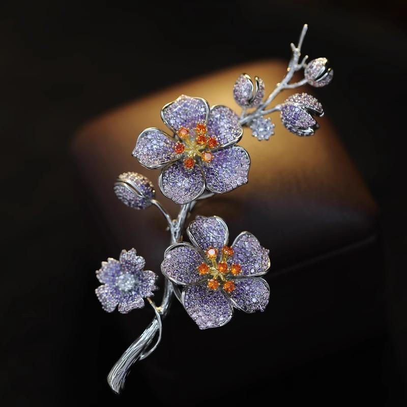 ・カテゴリ: ブローチ・素材: 銅・装飾素材: ジルコン・: 植物、花、梅・加工工程: 象嵌・サイズ: 47mm × 100mm・スタイル: 日韓風、フェミニン、スウィート・用途・機能: 装飾、結婚式用、2Way、ウエストマーク、ギフト用、チラ見え防止、固定用・対象: ユニセックス