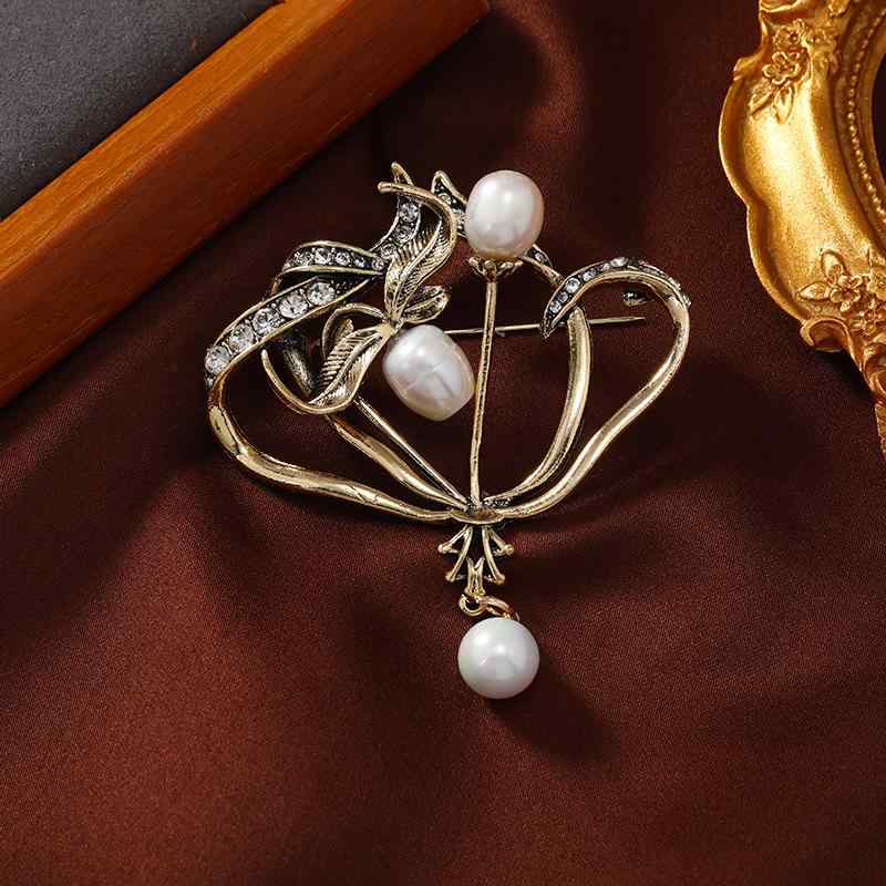 【デザインポイント】フェイクパールをブリッジのように渡らせてつけることのできる新しいブローチピンです。 プッシュピンタイプで留めやすく、ロックもかかる安心仕様を採用しています。 好きな位置にアシンメトリー調に留められるデザインです。 キラッと光るストーンをさりげなくあしらった特別感あるアイテムです。 【スタイリングポイント】胸元にお好きな角度で留められます。 また、シャツやスキッパーデザインのような、衿元に渡らせてつけるのもとてもおすすめ◎ベーシックアイテムを特別感あるアイテムに昇格していただけます。 ※照明の関係により、実際よりも色味が違って見える場合があります。 また、パソコン・スマートフォンなどの環境により、若干製品と画像のカラーが異なる場合もございます。 【製品寸法】●製品寸法:00(FREE):全長19.5cm モチーフH2.5cm モチーフW2.5cm備考:【素材】合金 プラスチックパール ガラス00(FREE) : 【モチーフのサイズ】2.5×2.5cm / 【全長】19.5cm インディヴィ INDIVI 【贈り物/クリスマス】ブリッジパール調ブローチ (ゴールド(007)) 3,300 ~