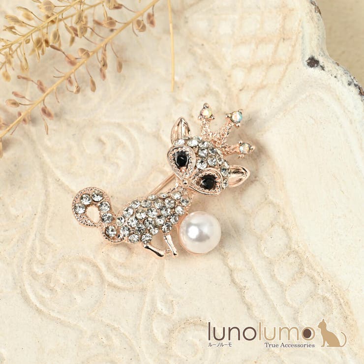 【10%OFFクーポン!2/10(火)1:59まで】lunolumo ブローチ レディース きつね キツネ 狐 パール 王冠 キラキラ ラインストーン BR アクセサリー 1,881 ~