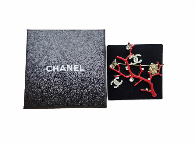 CHANEL シャネル COCO ココマーク Seashell Coral Shaped 貝殻 珊瑚 Rhinestone Brooch ラインストーン ブローチ 【中古】Bランク 98,780 ~