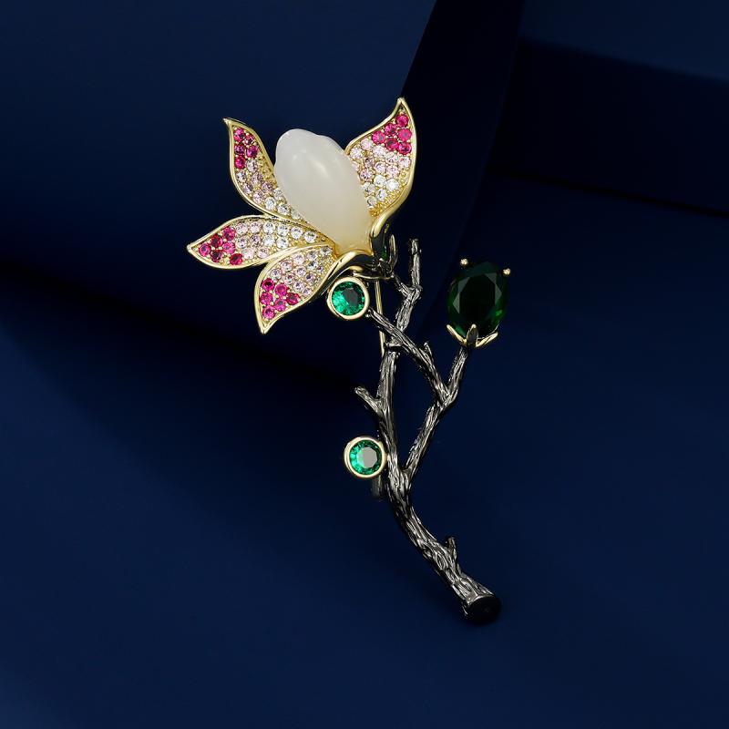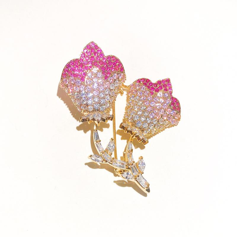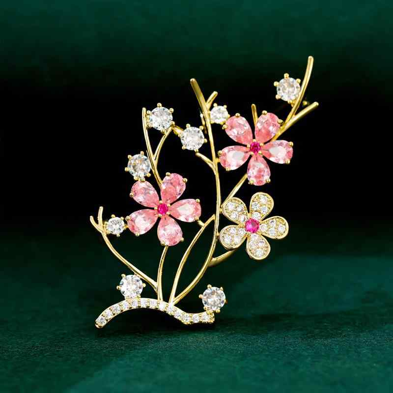 ・カテゴリ: ブローチ・素材: 銅・モチーフ: 花、植物・装飾素材: ジルコン・加工: 象嵌・スタイル: ラグジュアリー、通勤、ファッション・対象: 男女兼用
