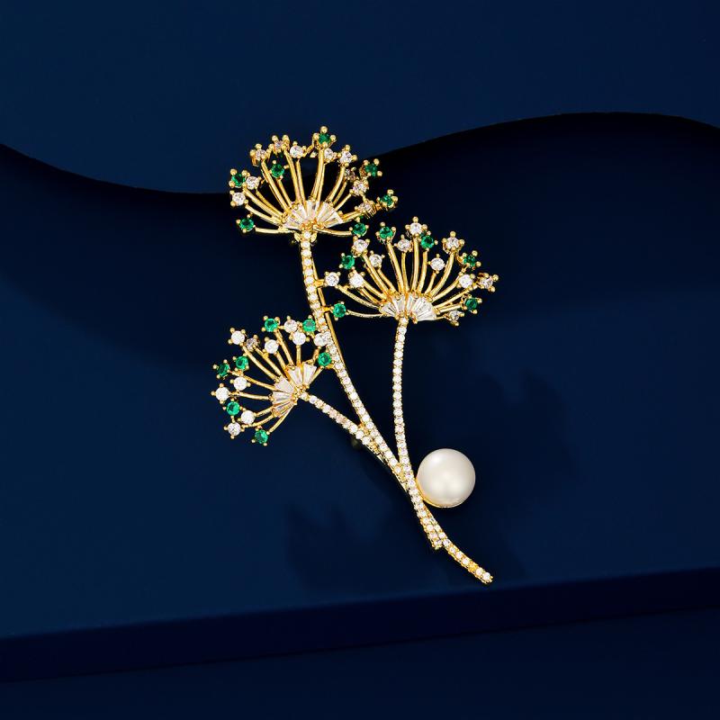 ・カテゴリ: ブローチ・主な素材: 銅・装飾素材: 天然パール、ジルコン・柄: 蒲公英、植物、花・スタイル: ファッション、通勤・対象: 男女兼用