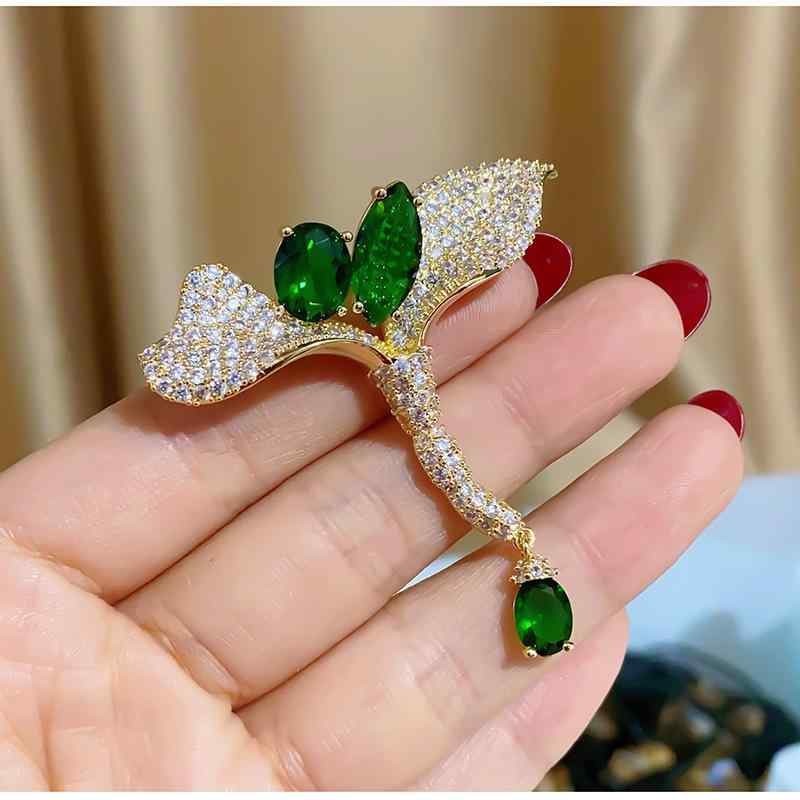 ・カテゴリ: ブローチ・スタイル: ラグジュアリー・素材: 銅・加工: 象嵌・装飾素材: ジルコニア・: 葉、花・モチーフ: 如意・対象: 男女兼用