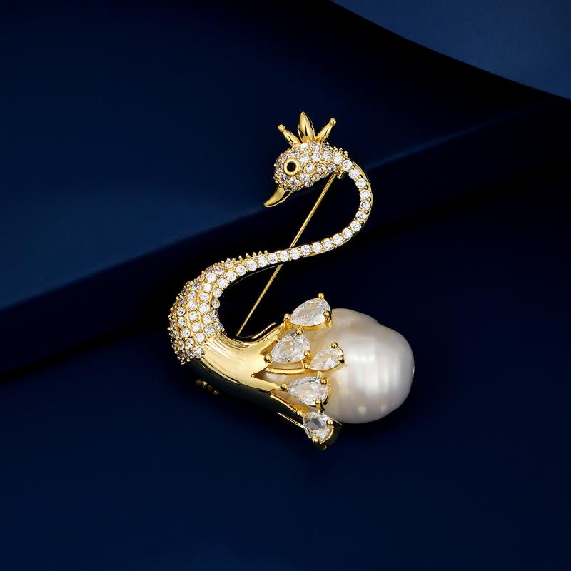・カテゴリ: ブローチ・素材: 銅・装飾素材: 天然パール、ジルコニア・モチーフ: 動物、白鳥・加工: 象嵌・機能: 多機能・スタイル: ファッション通勤・対象: 男女兼用