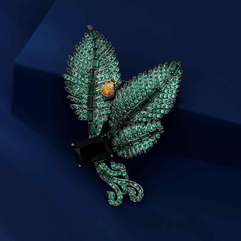 ・素材: 銅・カテゴリ: ブローチ・モチーフ: 植物、花、リーフ・装飾素材: ジルコン・加工: 象嵌・スタイル: ファッション、通勤・対象: 男女兼用・カラー: ブラック(グリーン)、ブラック(レッド)、ゴールド(グリーン)