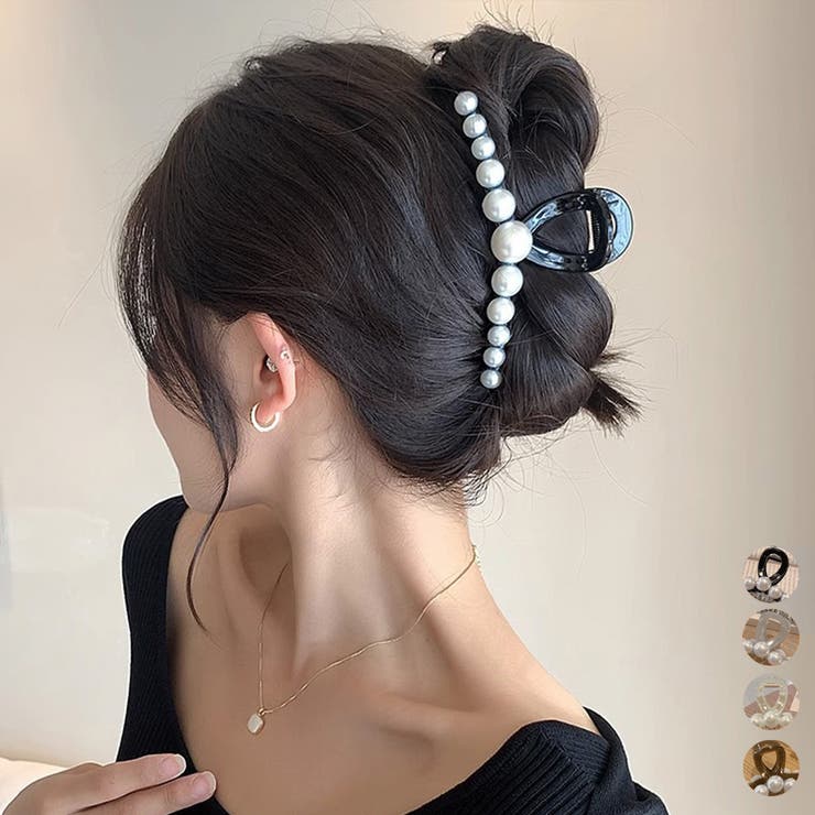 【10%OFFクーポン!2/10(火)1:59まで】アクセサリーショップPIENA ヘアクリップ レディース 春夏秋冬 大きめ 髪留め ヘアアクセ バンスクリップ 並んだフェイクパール 合成樹脂 上品 光沢あり 大人 黒 ヘアアクセサリー 2,827 ~