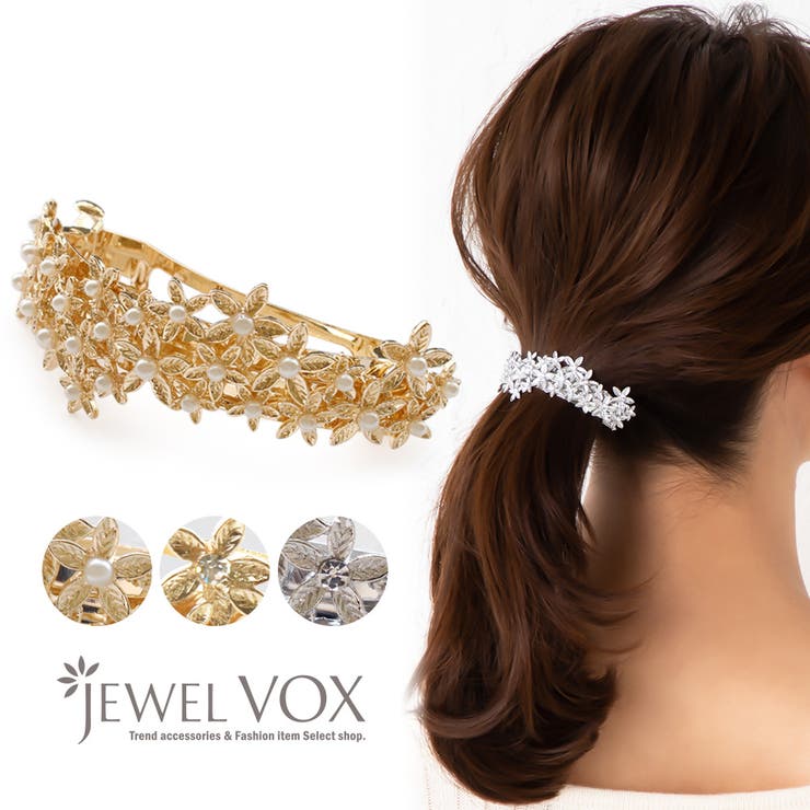 ※こちらの商品はメッキ加工を施しております。 そのため汗・水に大変弱く、水分が付着する可能性がある場合には必ずお外しください。 ※モチーフの表面には細かい傷や凹み、色ムラが見られる場合がございます。 予めご了承ください。 ■商品詳細■▽サイズ:全長:約W10.5×H4.5cmバレッタ挟み幅:約6.5cm▽重量:約46.0g▽カラー:ゴールド / シルバー立体感のある上品なお花とリーフにドロップ型パールが美しいバレッタです。 艶やかな メタルとパールを合わせた女性らしさが光るフェミニンなデザイン。 縦幅のあるバレッタなのでハーフアップなどまとめ髪に馴染みやすいフォルムで使い勝手も◎!【商品のお気に入り登録】人気商品の再入荷や値下げの通知をいち早く受け取ることが出来ます♪返品・交換について購入後の交換は受け付けておりません。 予めご了承ください。 返品を希望される場合は購入履歴一覧の「ショップへの問い合わせ」よりお問い合わせください。 =========================複数配送先指定について1件の注文に対して、異なる住所への配送は対応出来かねます。 恐れ入りますが、異なる住所へ配送をご希望の場合、配送先毎に分けて注文いただきますようお願い申し上げます。 【ヘアアクセサリーWOMEN】ゴールド シルバー 選択ゴールド シルバー Jewel vox バレッタ ヘアアクセ 髪留め レディース パール フラワー ヘアアレンジ まとめ髪 結婚式 パーティー フォーマル 可愛い おしゃれ デイリー 大人 30代 40代 50代 女性 韓国 大人 韓国ファッション 人気 ヘアアクセサリー 2,290 ~