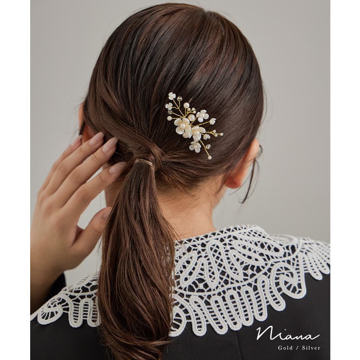 niana ニアナ 可憐なパールフラワーモチーフが可愛いヘアコーム。 全体的に飾り付けたお花とクリアビーズが女性らしい印象に。 ショートヘアの方やヘアアレンジが苦手な方でも簡単にお使いいただけます。 髪に差し込むだけなので、アップヘアーからダウンスタイルまで。 ワイヤーは調整ができるので、お好みの形に調整していただけます。 より一層華やかなヘアスタイルに仕上がります。 オススメシーン結婚式・二次会・披露宴・お呼ばれ・成人式・同窓会女子会・2次会・謝恩会・パーティー・デート・演奏会発表会など多様なシーンのコーディネートに使えます。 【素材】鉄、アクリル、プラパール、ガラス【生産国】日本【サイズデータ】(縦)F: 6.6cm(横)F: 7.3cm【カラー展開】ゴールド/シルバー【商品注意事項】※サイズはメーカー採寸になりますが、多少誤差が生じる場合がございます。 ※モデル画像は環境光の影響によりカラーが異なって見える場合がございます。 平置きのカラー画像を御参考下さい。 ※商品画像はご覧になるモニターなどの環境によって若干の誤差があります。 返品・交換について購入後の交換は受け付けておりません。 予めご了承ください。 返品を希望される場合は購入履歴一覧の「ショップへの問い合わせ」よりお問い合わせください。 =========================複数配送先指定について1件の注文に対して、異なる住所への配送は対応出来かねます。 恐れ入りますが、異なる住所へ配送をご希望の場合、配送先毎に分けて注文いただきますようお願い申し上げます。 【ヘアアクセサリーWOMEN】ゴールド シルバー F 鉄、アクリル、プラパール、ガラスゴールド シルバー 【10%OFFクーポン!2/10(火)1:59まで】Fashion Letter niana ニアナ パールフラワーコーム ヘアアクセサリー ヘアピン ヘッドドレス 花 ビーズ シルバー ゴールド パーティー 結婚式 披露宴 二次会 成人式 同窓会 卒業 2,970 ~