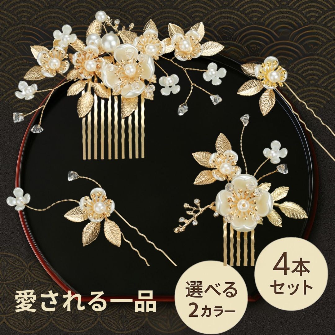 髪飾り 留袖 4点セット パール 母親 かんざし 結婚式 フラワー ヘアピン コーム 成人式 卒業式 入学式 七五三 和装 洋装 浴衣 着物 振袖 ゴールド シルバー 高見え ヘアアクセサリー 上品 華やか 1,980 ~
