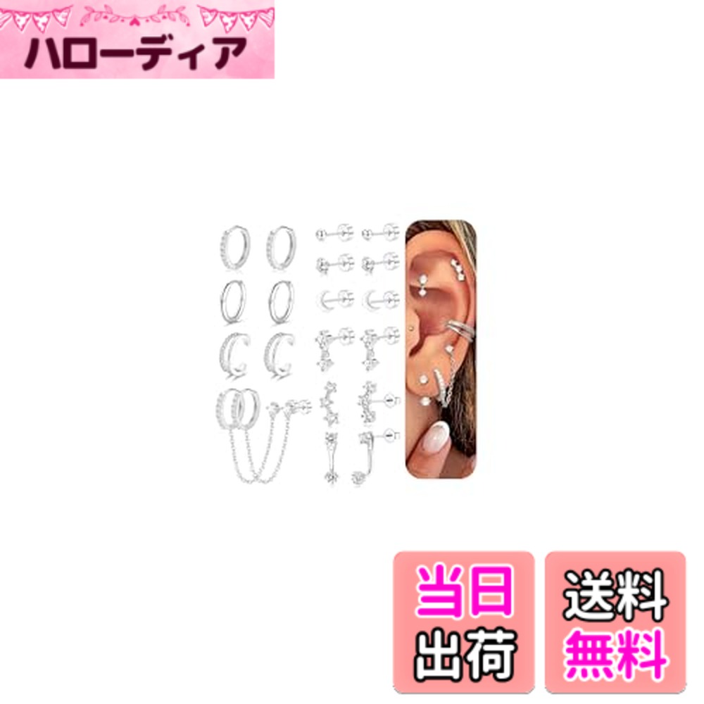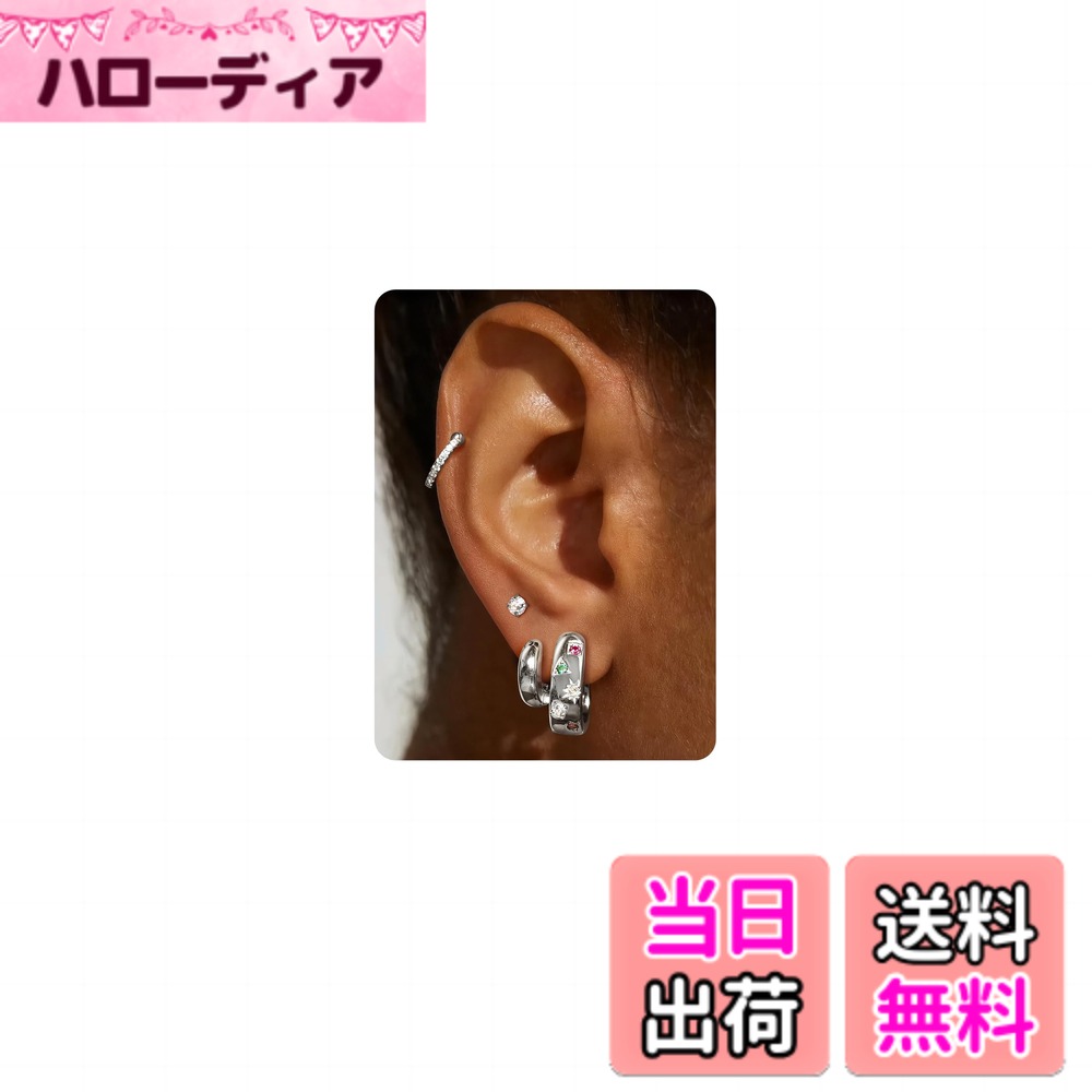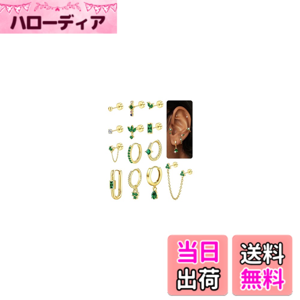 【送料無料】Jstyle 25点 ピアス レディース スタッド ネジ式 ゴールド 小さめ フープ 複数 ヘリックス キュービックジルコニア アレルギー対応 ステンレス 軟骨 女性 ジュエリー 色:エメラルドシルバー、サイズ:通常 3,280 ~
