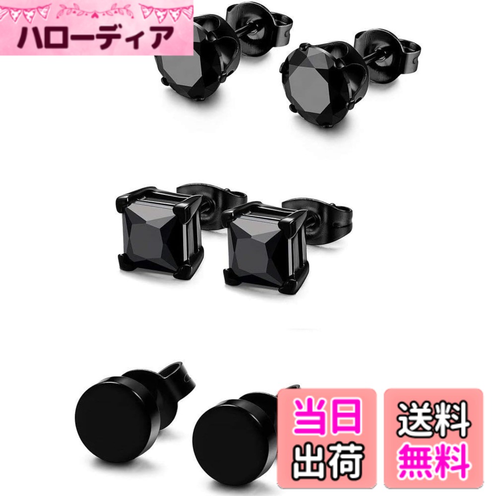 【送料無料】Jstyle 3ペア ピアス メンズ スタッドピアス ブラック 両耳 セット 男性 一粒 スクエア ステンレス アレルギー対応 トラガス 日常 シンプル ピアス 色:ブラック、サイズ:5MM 2,036 ~