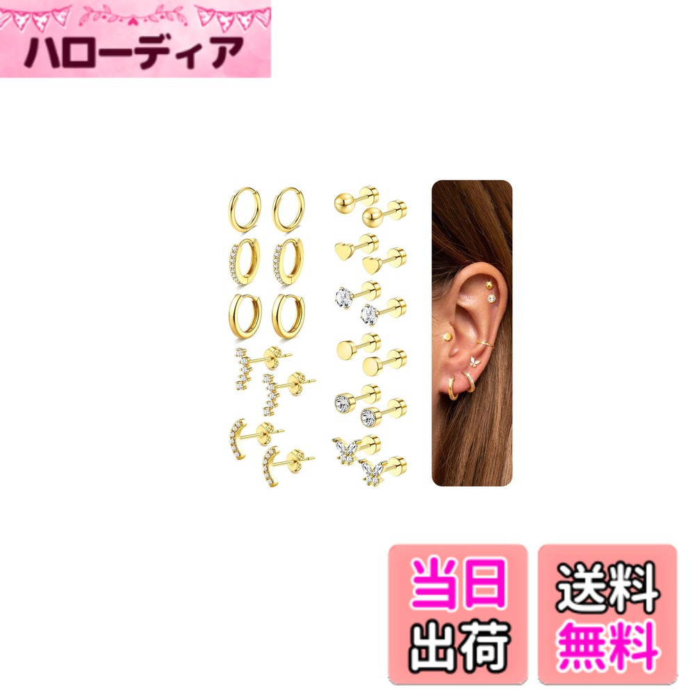 【送料無料】Jstyle 10ペア ピアス レディース 人気 セット シルバー ゴールド スタッドピアス フープ リング 小さめ ステンレス 複数 ジルコニア アレルギー対応 軟骨 女性 ジュエリー 色:ゴールド、サイズ:通用 2,736 ~